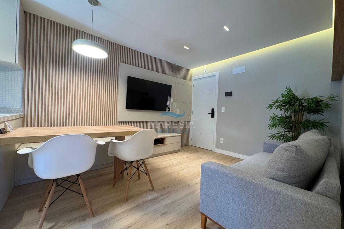 O apartamento possui área privativa de 46,44 m² e área total de 56,44 m², com ambientes bem planejados e acabamento moderno. O imóvel está totalmente decorado e conta com 02 dormitórios, sendo 01 suíte, além de 01 banheiro social, sala de estar e jantar integradas com a cozinha, proporcionando um ambiente funcional e aconchegante. A sacada com churrasqueira a carvão é um dos destaques do imóvel, ideal para momentos de lazer, e a unidade dispõe ainda de 01 vaga de garagem, garantindo praticidade no dia a dia.