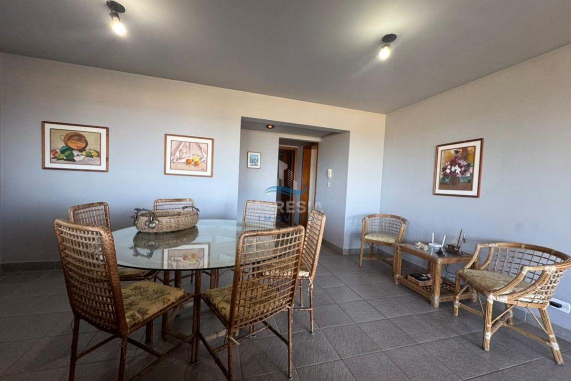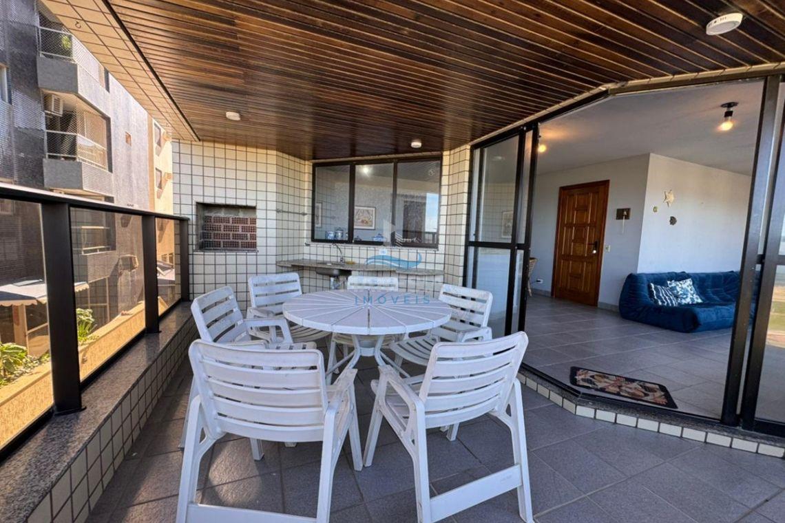 O apartamento conta com 175,00 m² de área privativa e 268,67 m² de área total, com ambientes amplos e muito bem distribuídos. Possui 05 dormitórios, sendo 03 suítes e uma dependência de empregada, além de 01 banheiro social e 01 lavabo. A área social é composta por uma ampla sala de estar e jantar, integrada a uma generosa sacada com churrasqueira, perfeita para momentos de lazer com uma vista privilegiada do mar. A cozinha é espaçosa e separada, e o imóvel conta ainda com ampla lavanderia. O apartamento é semi mobiliado, oferecendo praticidade e conforto desde o primeiro momento. Dispõe de 02 vagas de garagem.