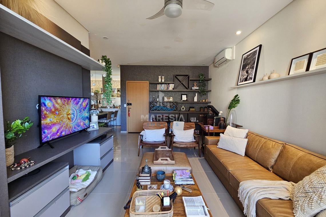 O destaque fica por conta da área gourmet com churrasqueira, totalmente integrada ao terraço privativo, perfeita para momentos de lazer e confraternização com a família e amigos. O apartamento dispõe ainda de área de serviço, 02 vagas de garagem e está completamente mobiliado e decorado, contando com ar-condicionado em todos os ambientes, garantindo conforto em todas as estações.