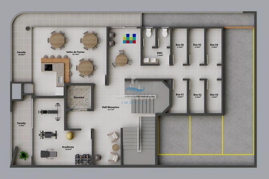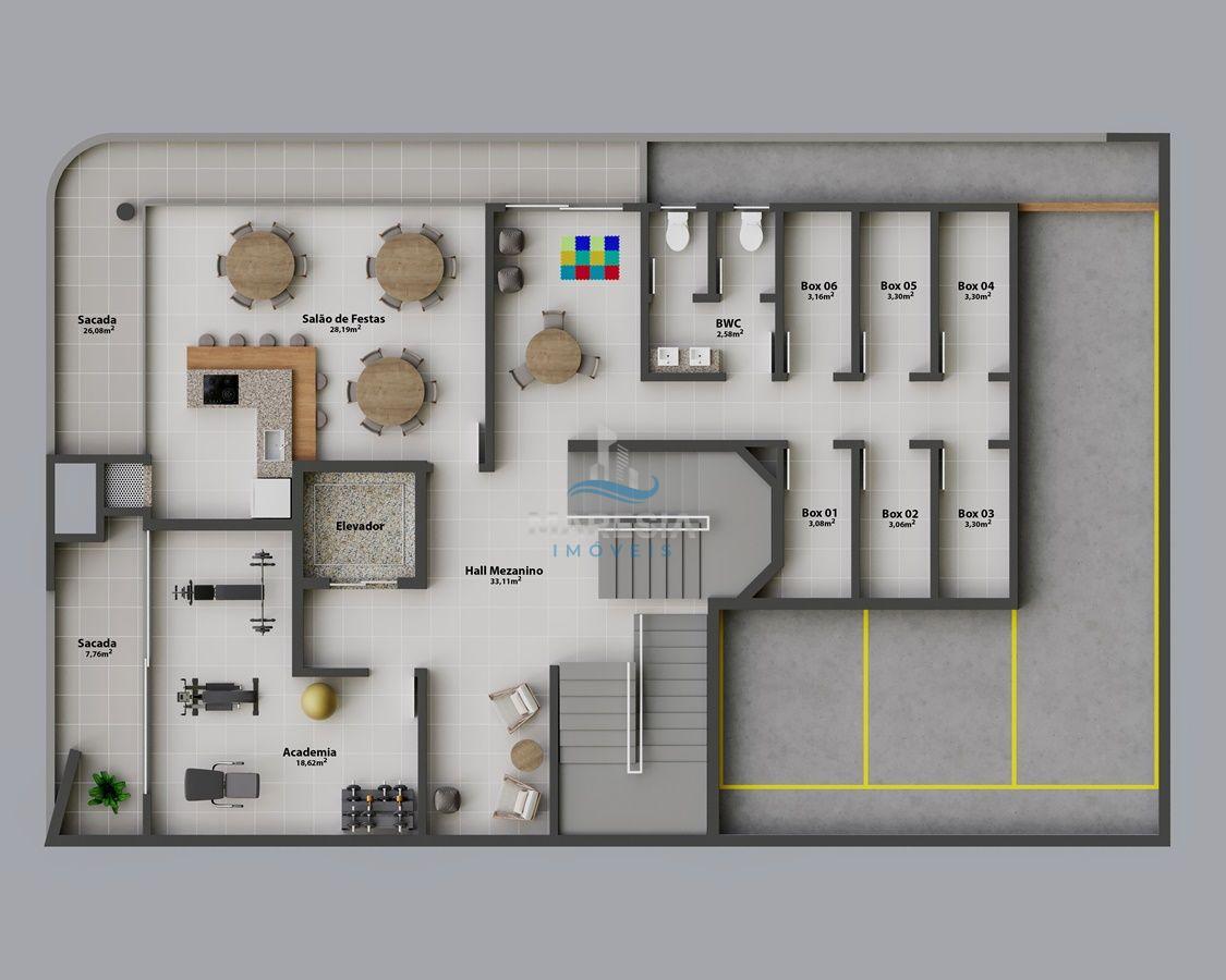 O prédio conta com unidades de 85,96 m² a 245,32 m² de área privativa.
