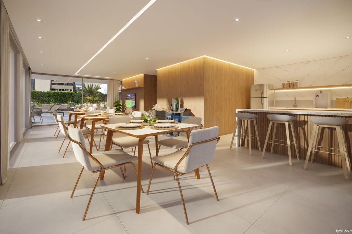 Além disso o condomínio, com 1100 m² de área de lazer oferece, hall com pé direito duplo, salão de jogos, espaço gourmet, wine club, adega climatizada, 02 salões de festa com churrasqueira, fireplace, espaço fitness, spa, sauna, piscina aquecida coberta, vestiários individualizados, piscina de 143 m², duchas de higienização pós-praia, box para acessórios de praia, terraço descoberto, solário com floreiras, espaço pet, vídeo-portaria com reconhecimento facial e controle remoto, sistema de segurança e monitoramento, bike park, compressor de calibragem, jato de ar para limpeza, garagens com tomada para alimentação de veículos elétricos.