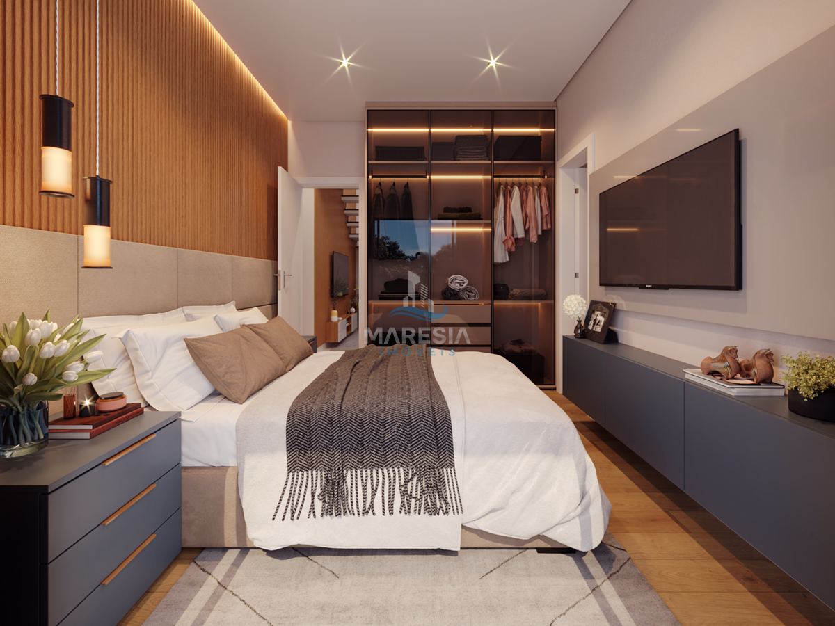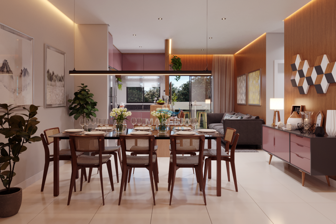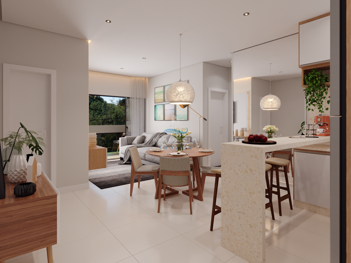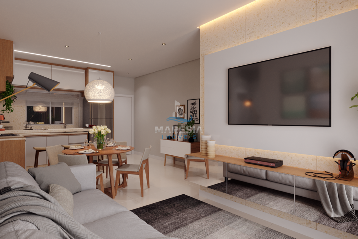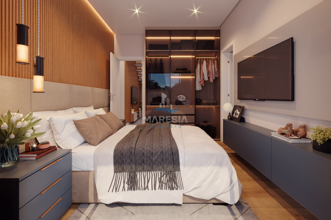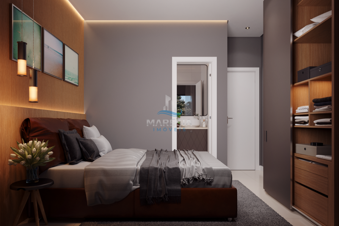 Apartamentos com 02 vagas de garagem, fechadura digital, Portas de madeira com vedação, forro de gesso rebaixado, infraestrutura para ar condicionado, medição individual (água, luz e gás), ampla sacada com churrasqueira, suíte com janela panorâmica, beach box, porcelanato 60x60 retificado em todos os ambientes e guarda corpo em vidro na varanda.