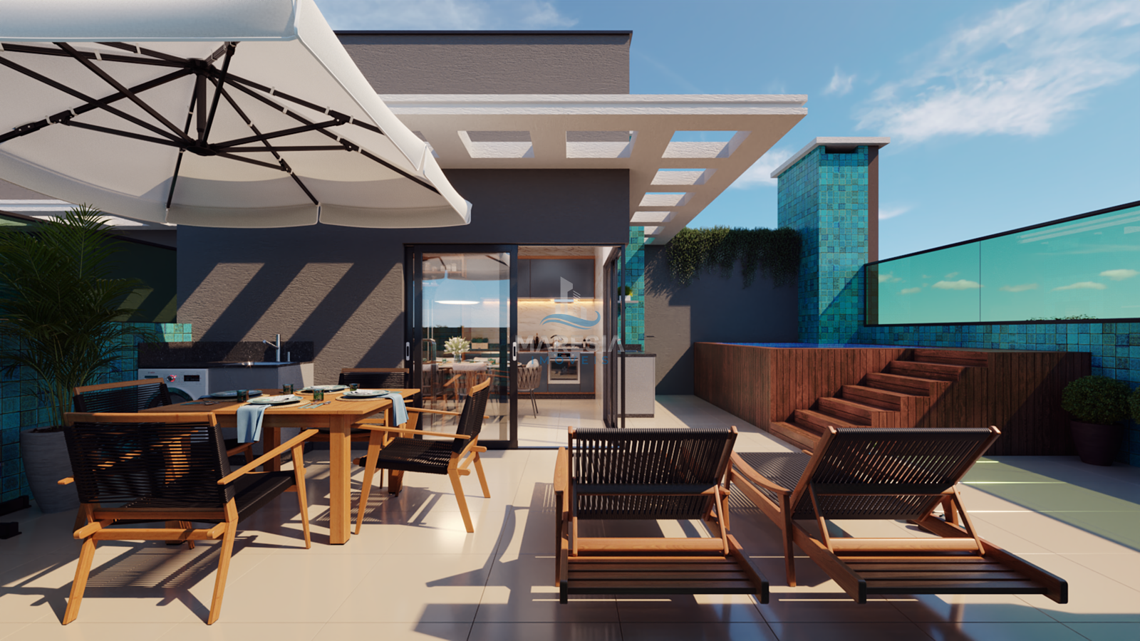 Condomínio com ótima área de lazer e aproveitamento máximo de iluminação natural contendo, piscina, solarium, terraço gourmet, fire longe, bicicletário, pet place, elevador, charge point, paisagismo low water, vagas e acesso PNE e sensor de presença.