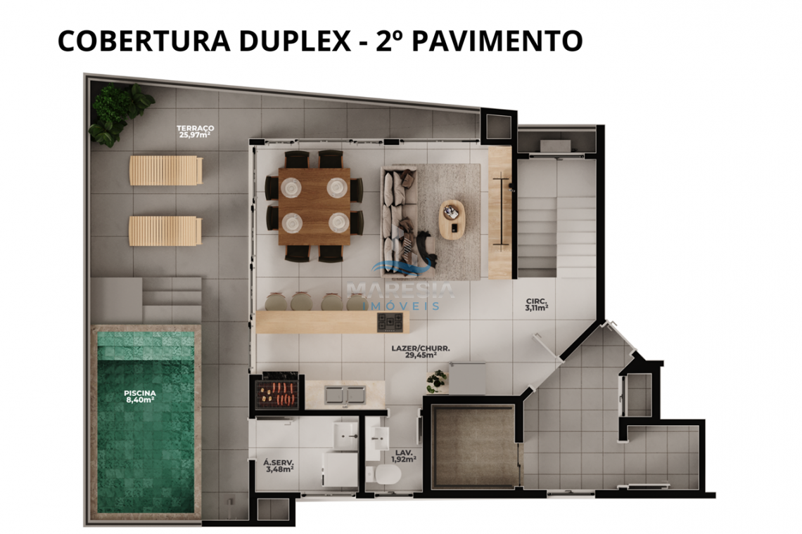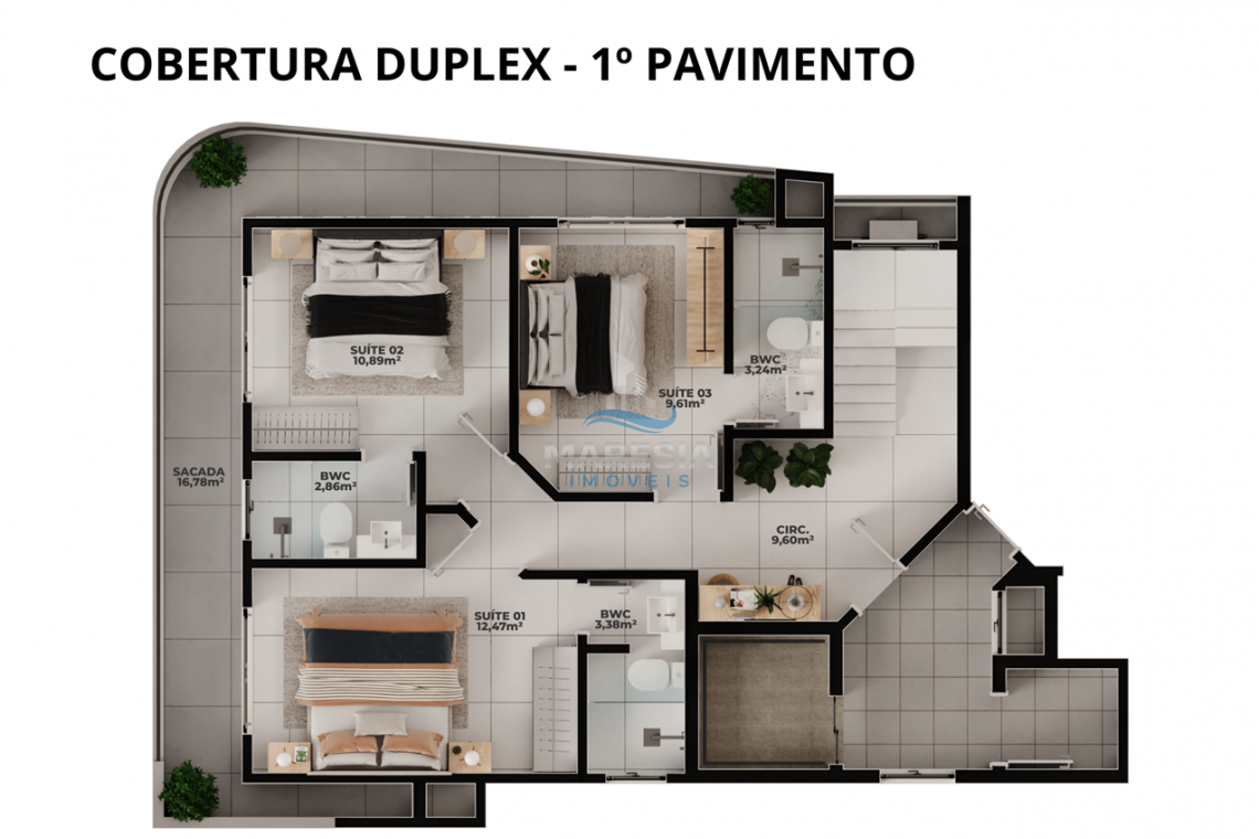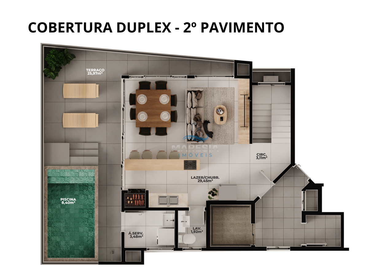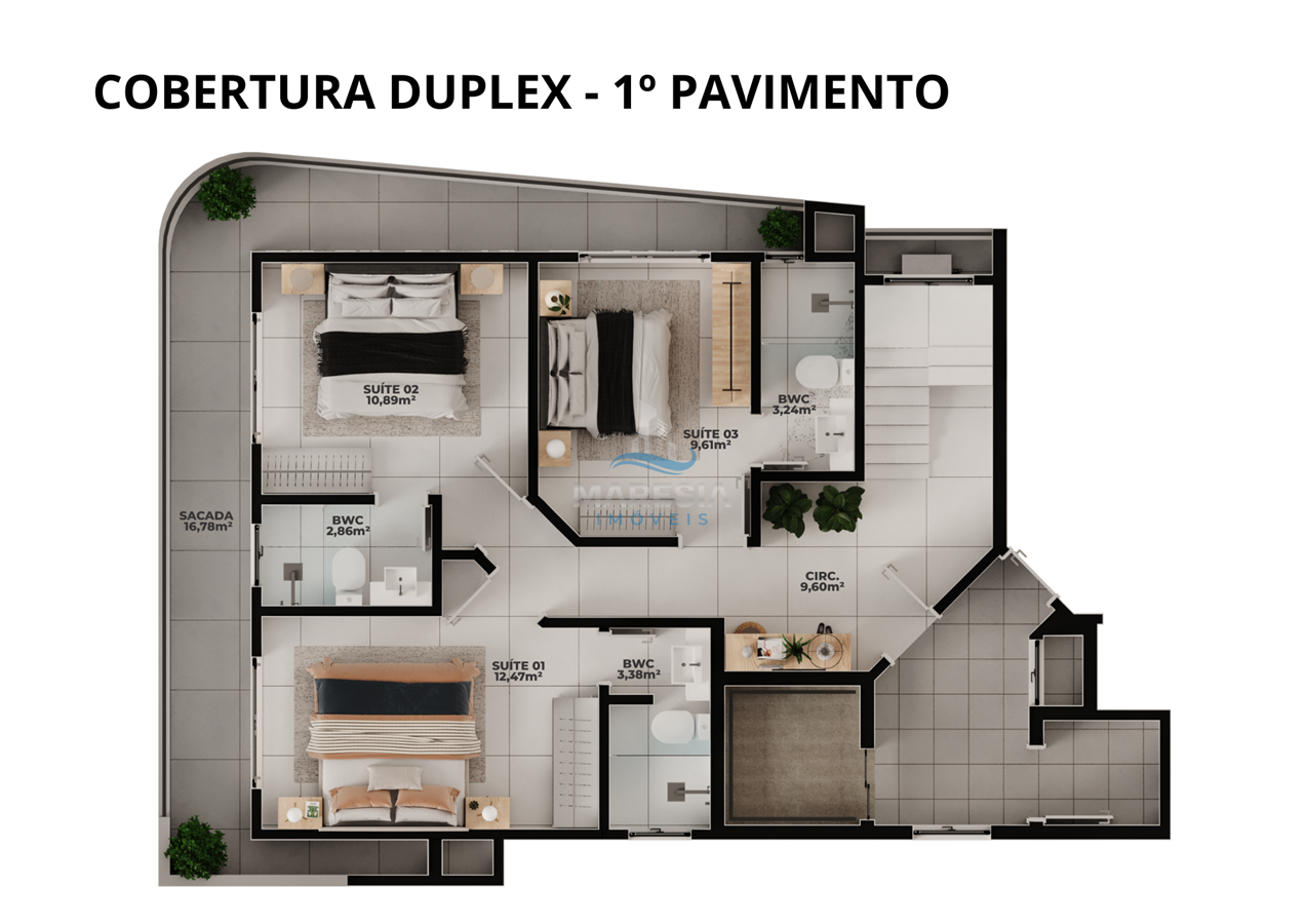 Cobertura duplex com 177,53 m ² de área privativa e 280,81 m² de área total distribuído em: