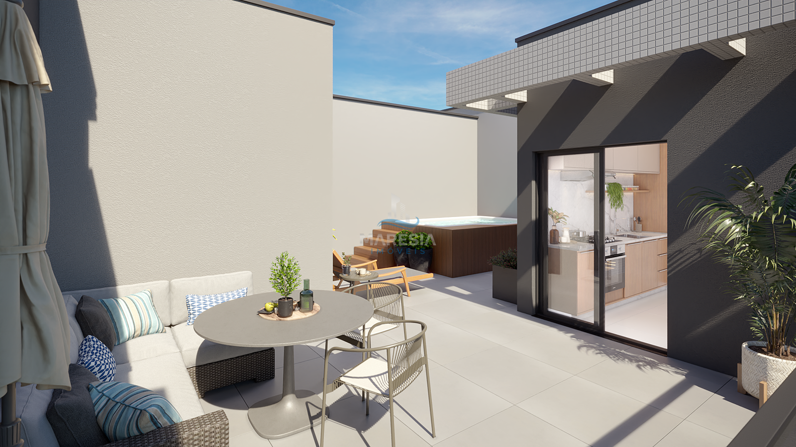 - Opcional 02 - 02 dormitórios com 71,56 m² privativos e terraço descoberto com 48.90m², 02 vagas, sendo 01 coberta e 01 parcialmente coberta