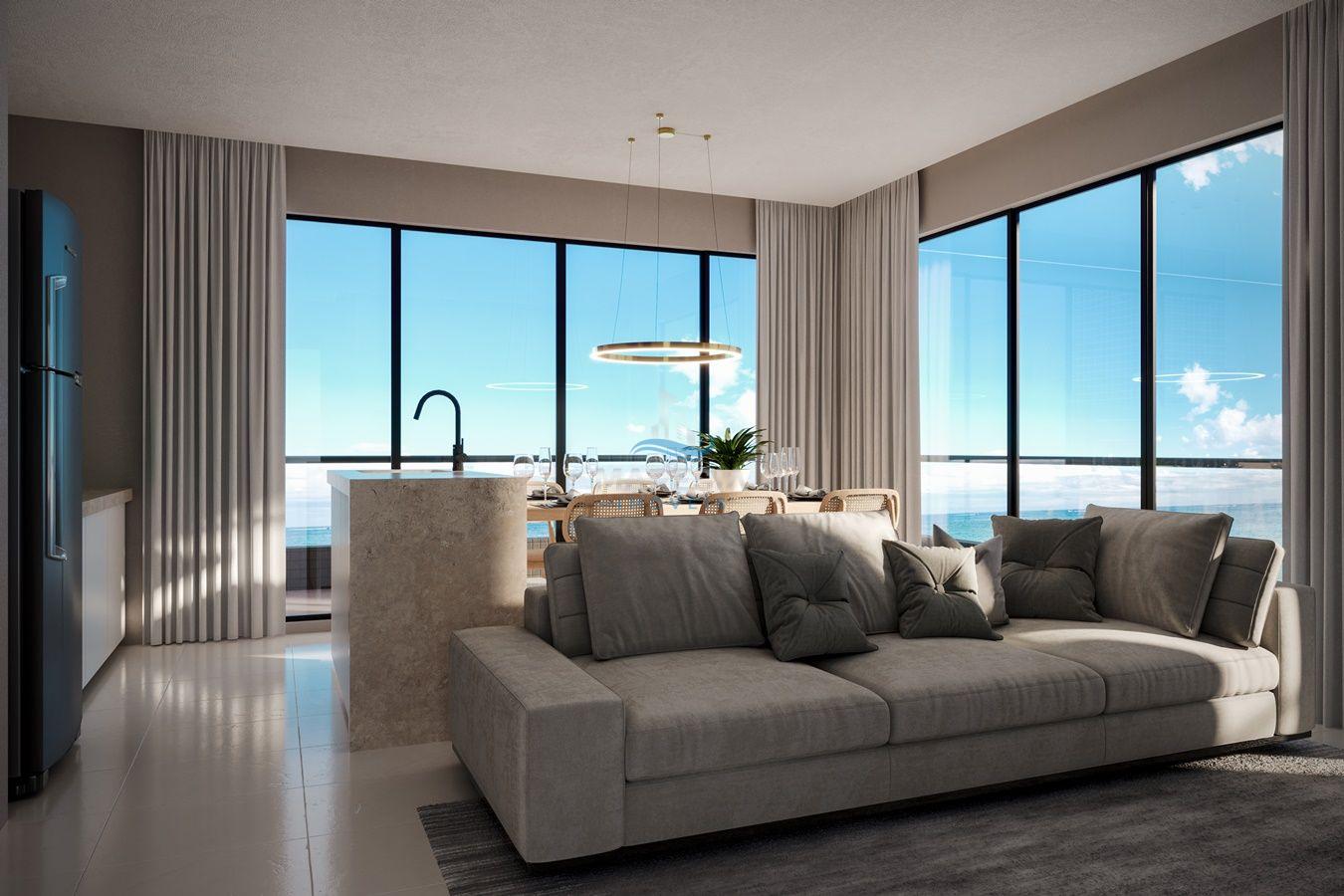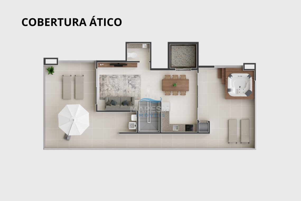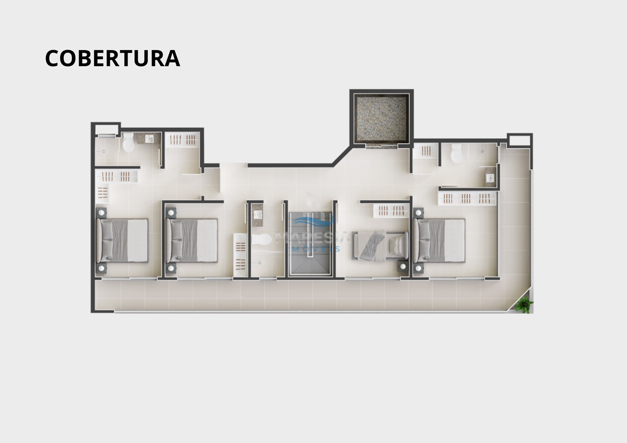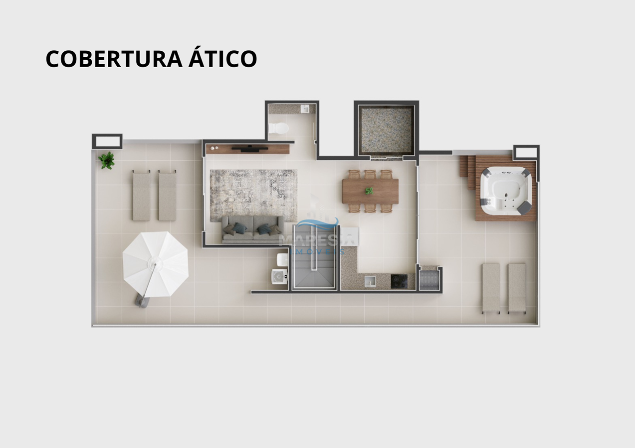 - Cobertura Duplex (41): área total privativa de 205,22 m², divididos em 04 dormitórios, sendo 02 suítes, 01 banheiro social, 01 lavabo, sala de estar integrada com a sala de jantar e cozinha (espaço social), ampla cobertura com espaço para SPA privativo e outros equipamentos de lazer, área de serviço e 03 vagas de garagem - Valor R$ 2.900.000,00