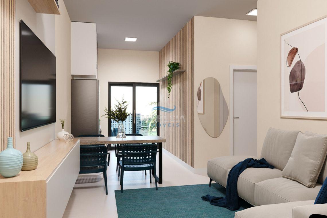 - Apartamento Tipo - 21: área privativa de 58,99m² e total de 86,72m², divididos em 02 dormitórios, sendo 01 suíte, sacada com churrasqueira e área de serviço, 01 banheiro social, sala de estar integrada com a sala de jantar e cozinha - Valor de R$ 599.000,00