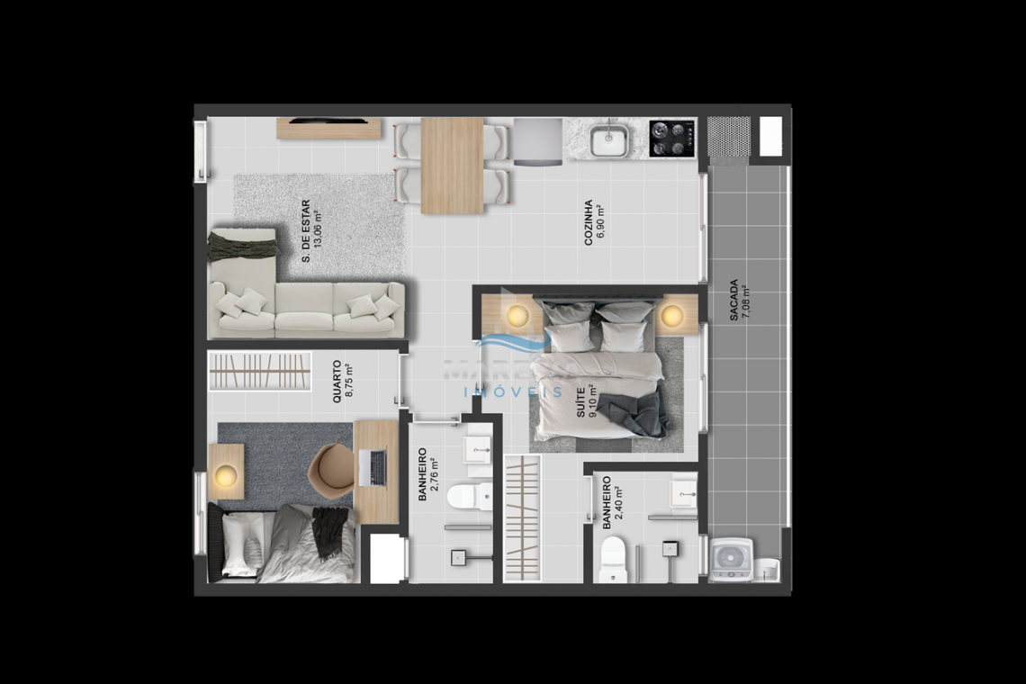 - Área Útil 58,99 m2