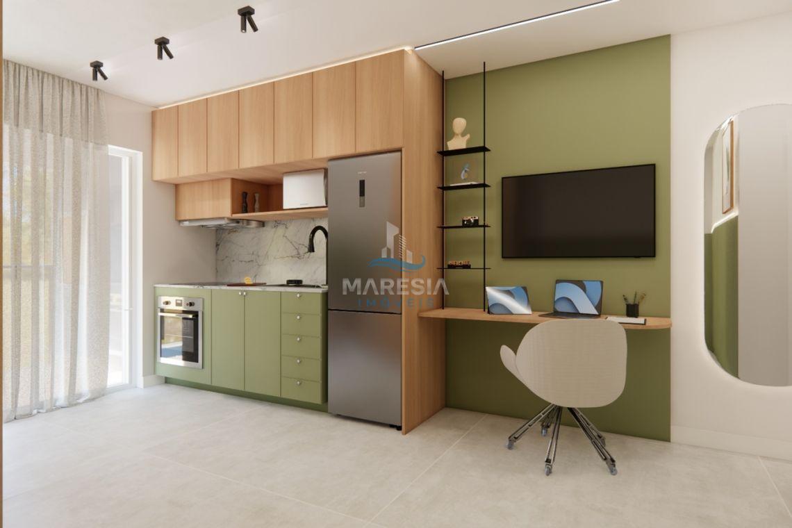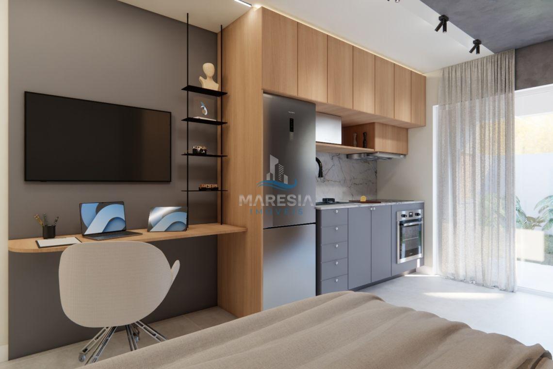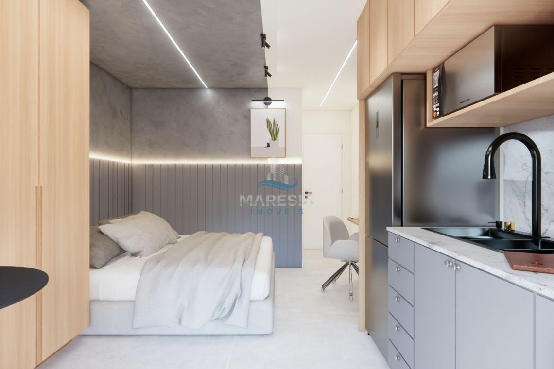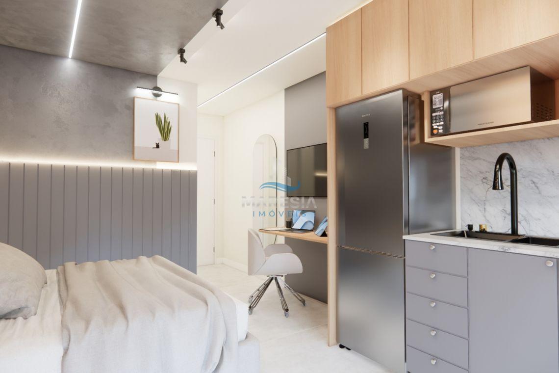 - Características das unidades – Studios: Com área privativa a partir de 28,00 m², possui sala para dois ambientes (cozinha e dormitório), sacada com churrasqueira, área de serviço, 01 banheiro social e 01 vaga de garagem privativa - Valores a partir de R$ 248.040,00