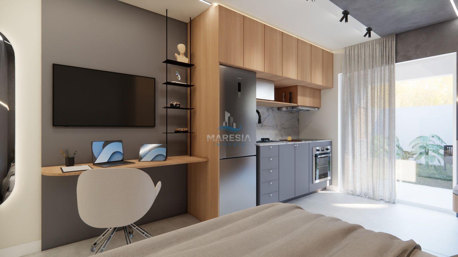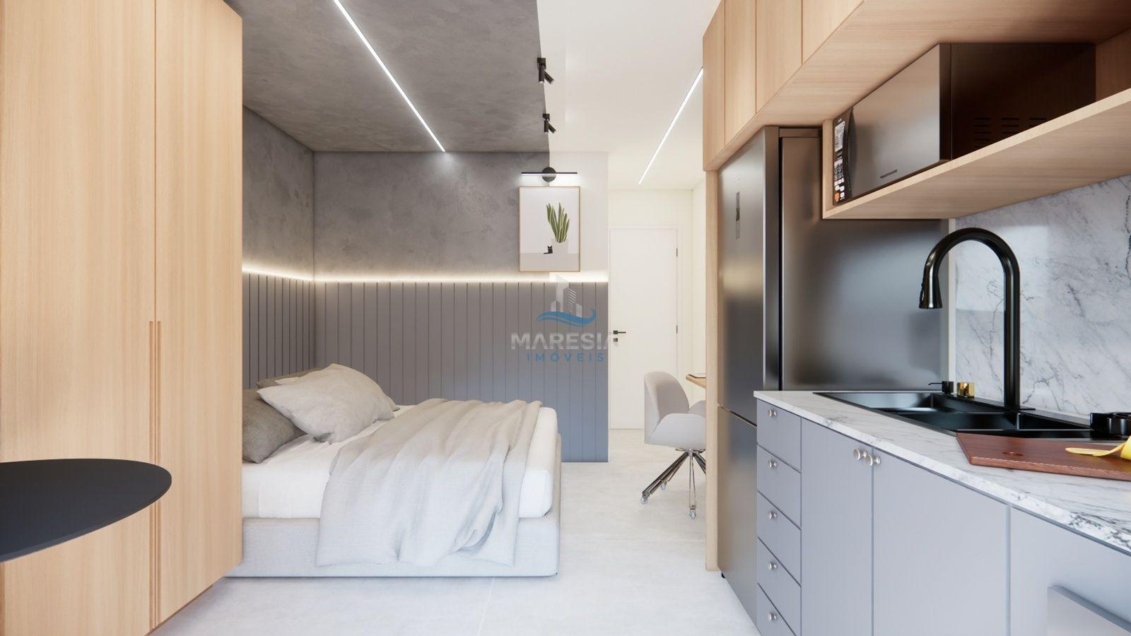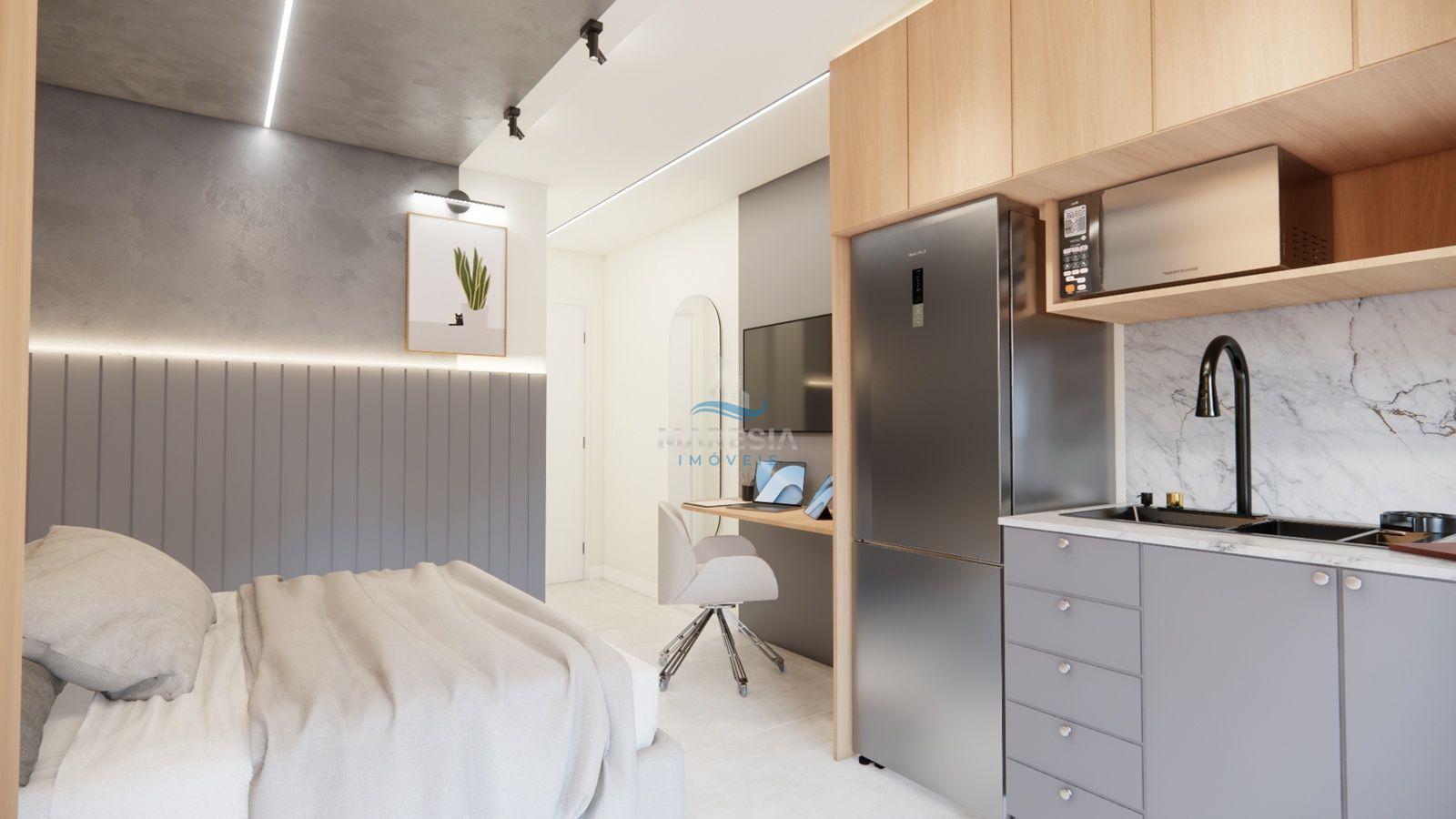 - Características das unidades – Studios: Com área privativa a partir de 28,00 m², possui sala para dois ambientes (cozinha e dormitório), sacada com churrasqueira, área de serviço, 01 banheiro social e 01 vaga de garagem privativa - Valores a partir de R$ 248.040,00